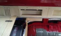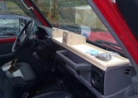 Vorne tauschen wir die alte löcherige Plastikmatte gegen eine Teppichmatte von All Car Carpets inklusive neuer Isolation darunter. Um mehr Stauplatz zu erhalten kreieren wir aus Aluprofilen und Sperrholz eine Konsole oben an den Sonnenblenden. Zwischen den Sitzen gibt es noch genug Platz um eine Box zu platzieren, ebenfalls aus Aluprofilen und Sperrholz. Intergriert in der Konsole zwischen den Sitzen ist die Luftheizungssteuerung und sonstige Schalter.Unser Landcruiser hat nur eine Tacho-, Temperatur- und Tankanzeige, das wollen wir ändern und bauen und programmieren selbst ein CarPC. Dieser wird uns die Drehzahl des Motors, Dieselverbrauch (l/100km), Temperaturen Innen und Aussen und vieles mehr anzeigen.